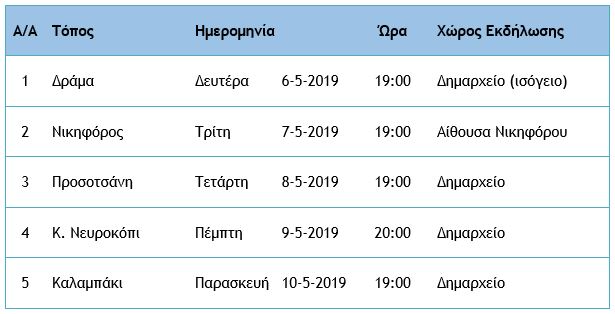 Ακολουθεί πίνακας με τις προγραμματισμένες ενημερωτικές εκδηλώσεις: