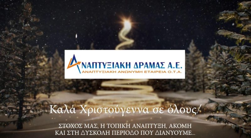 Ο πρόεδρος, το Δ.Σ. και οι εργαζόμενοι της Αναπτυξιακής Δράμας Α.Ε. σας εύχονται καλά Χριστούγεννα, ευτυχισμένο και σαφώς …ένα καλύτερο νέο χρόνο!